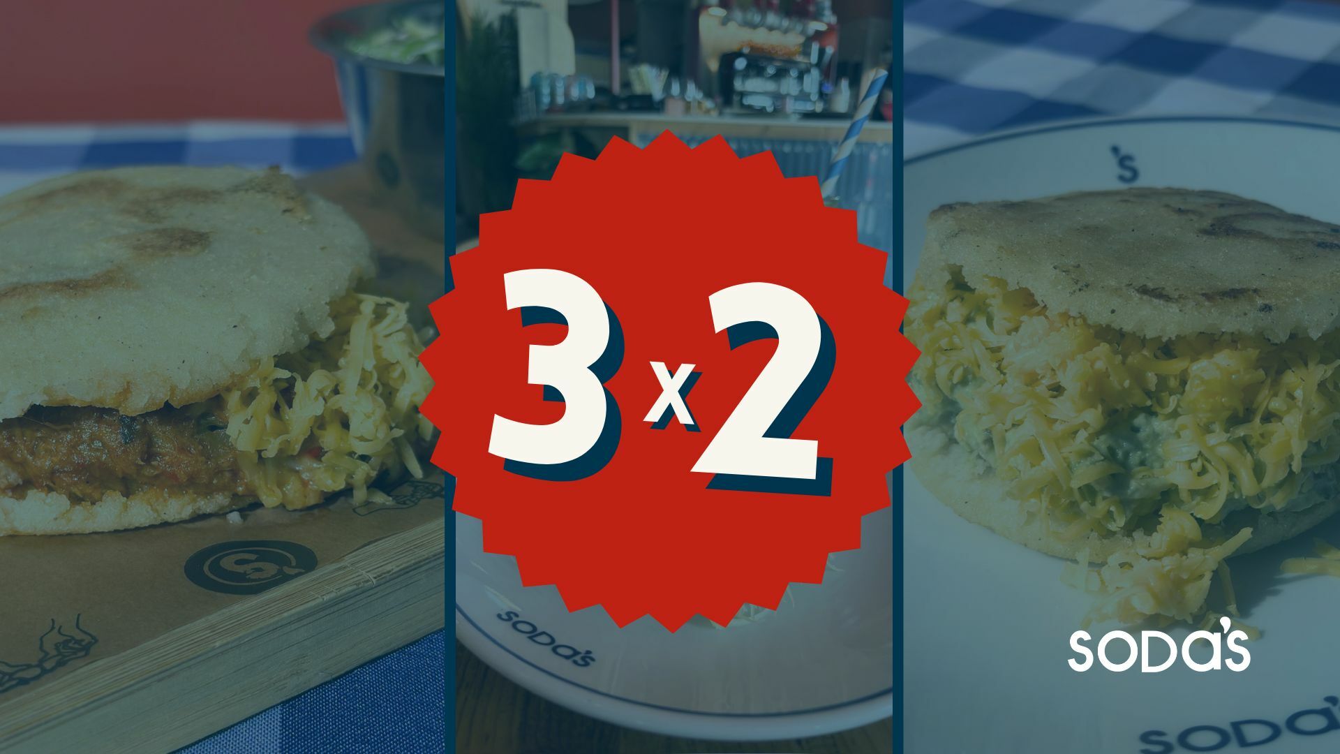Disfruta de un 3×2 en arepas en horario de desayuno.